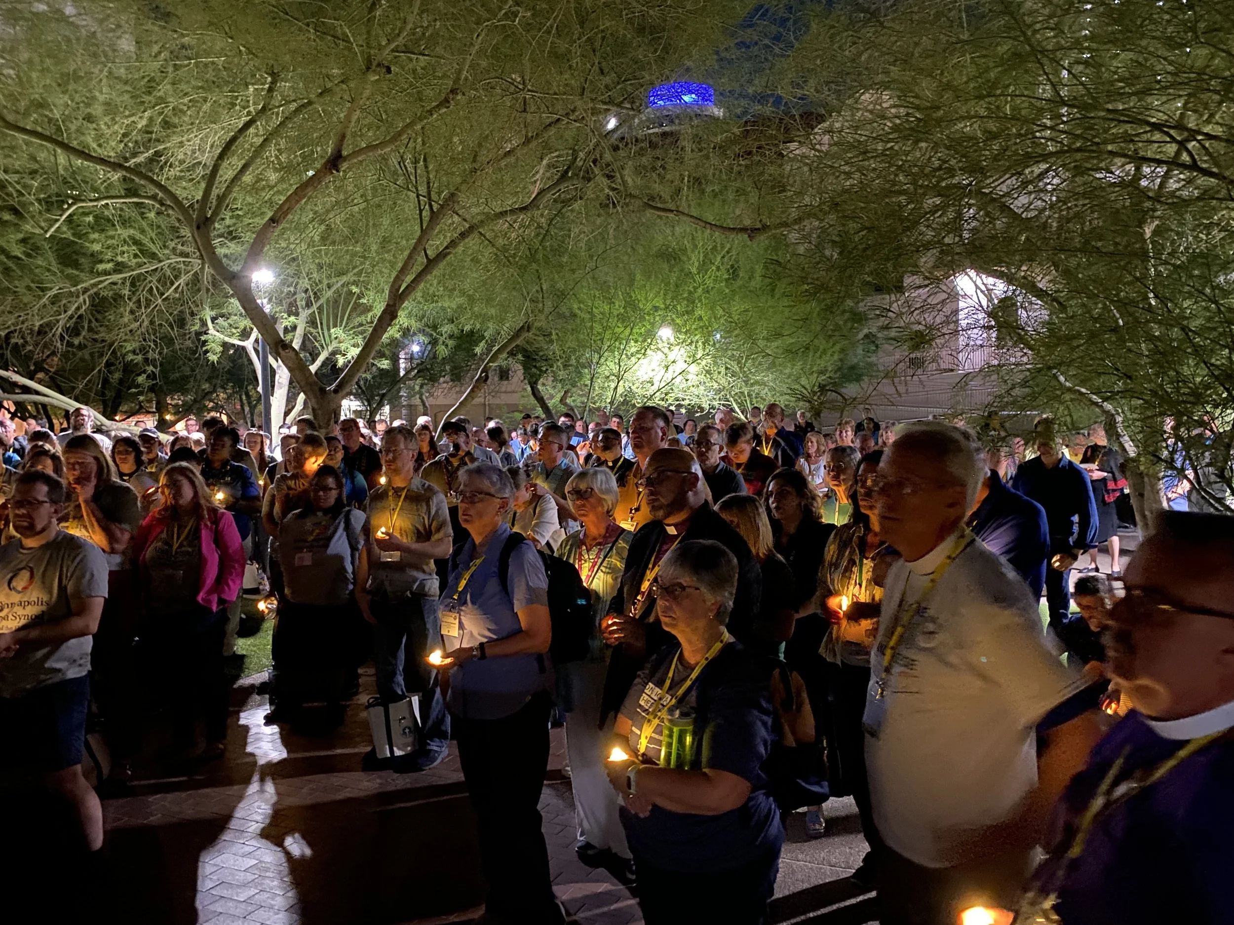 Approximately 250 people gathered for the AMMPARO Candlelight Prayer Vigil on July 30 at Peace Park in Phoenix, across from the ELCA Churchwide Assembly. Lutheran and interfaith leaders—including Presiding Bishop Elizabeth Eaton and Bishop Deborah Hutterer—joined voices in prayer and witness for the dignity and rights of migrants, refugees, and asylees. The vigil was a moving call to live out our faith through accompaniment and solidarity. Click here to view the full pictorial and read more.