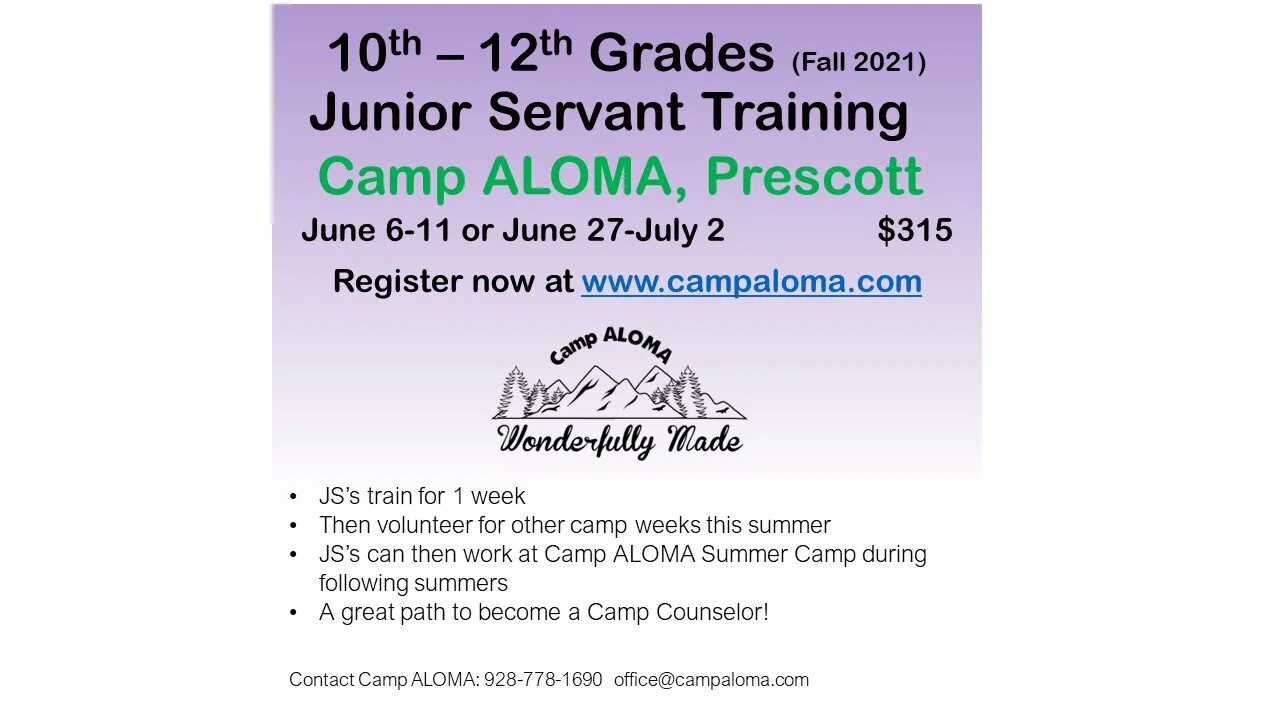 Camp ALOMA Junior Servant Training for 10th-12 Graders (Fall 2021)