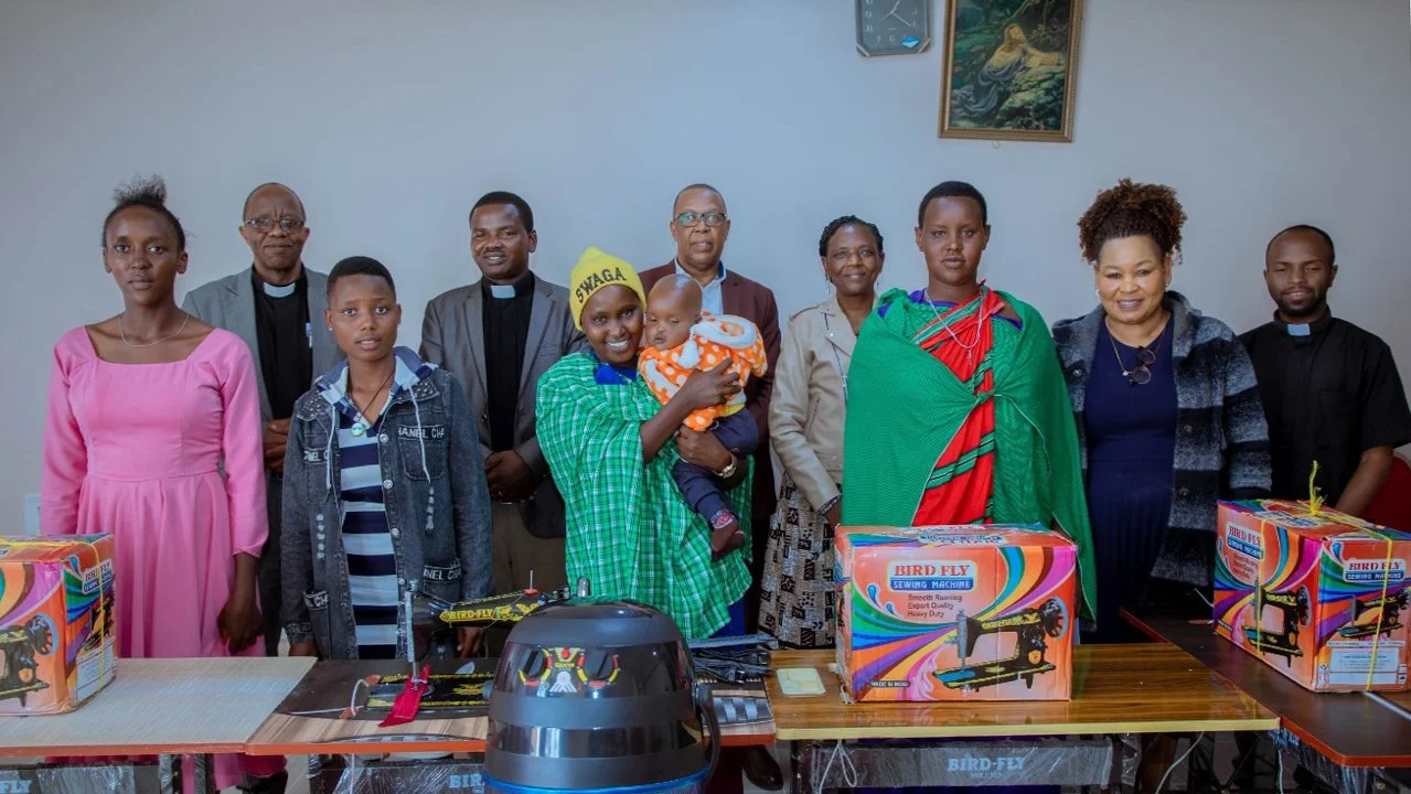 ELCT leaders present women who have completed their studies and skills training with tools to become self-sufficient. Photo: ELCT