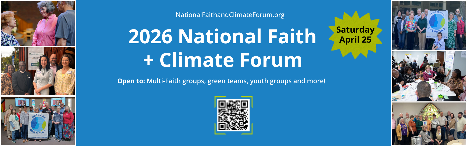 People of faith across the country are invited to participate in the National Faith + Climate Forum 2026 on Saturday, April 25, 2026 (9:00 a.m.–2:30 p.m. PT / 12:00–5:30 p.m. ET). This free gathering will bring communities together to deepen understanding, inspire hope, and equip congregations with practical ways to respond to climate change as an expression of faith and care for creation.