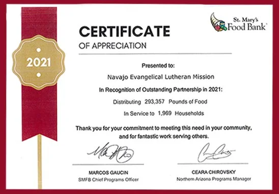 2021 was a very meaningful year for Rock Point area households. In total, the Navajo Lutheran Mission received and distributed over a quarter-million pounds of food to almost 2,000 Navajo homes.