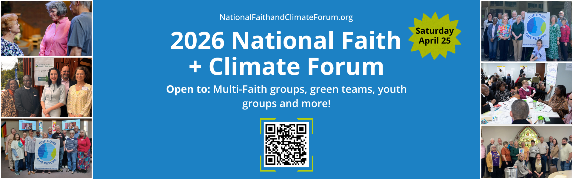 On Saturday, April 25, 2026, people of faith across the country will gather—online and in local communities—for the National Faith + Climate Forum, a nationwide event centered on faithful action, climate justice, and care for God’s creation. nationalfaithandclimateforum.org/